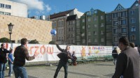 Hala sportowa jest miastu potrzebna - przekonywali dziś na Starym Rynku młodzi działacze PO. Organizując mecz siatkówki protestowali w ten sposób przeciwko rezygnacji z budowy obiektów sportowych przy ul. Mironickiej.