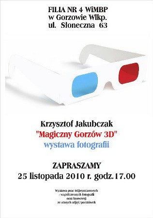 25 listopada nastąpi otwarcie wystawy trójwymiarowych prac Krzysztofa Jakubczaka. Składają się na nią fotografie współczesne oraz konwersje ze starych zdjęć i pocztówek.