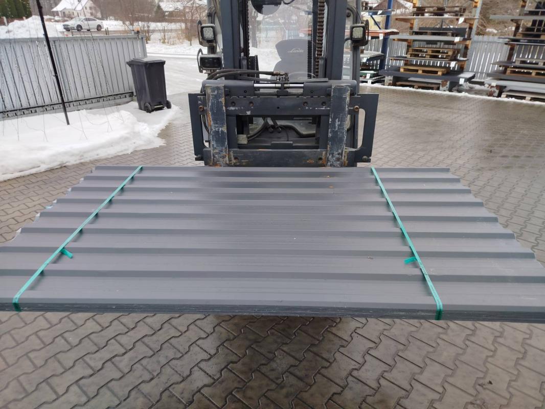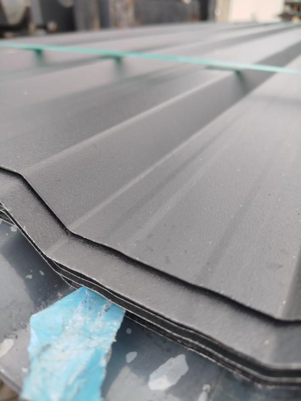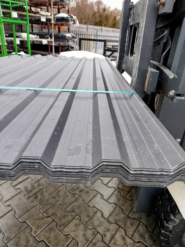 Blacha trapezowa T-18 antracyt mat, blacha może posiadać wady na powłoce w postaci zarysowań, odkształceń, różnic w odcieniach;