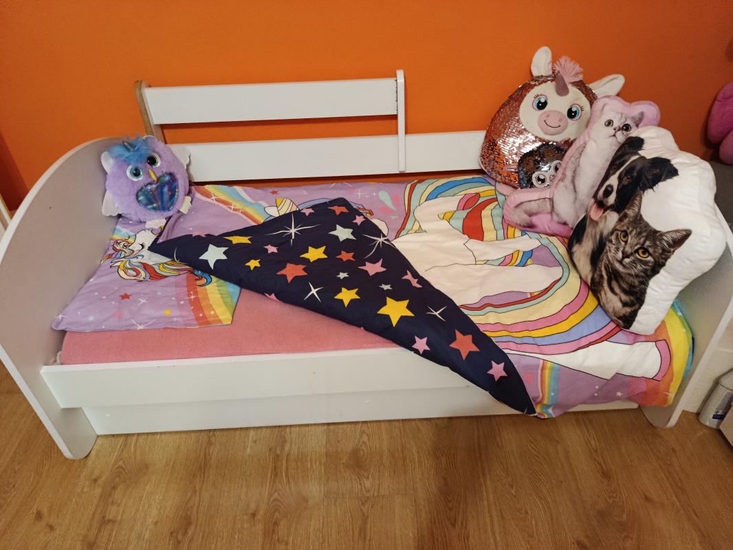 Sprzedam łóżko dziecięce białe 140/70 białe w stanie idealnym.Łózno używane bardzo sporadycznie, bardzo zadbane.Odbiór osobisty Gorzow Wlkp osiedle Górczyn.Moge dorzucić lampkę Minnie Mouse gratis.Szczerze Polecam .