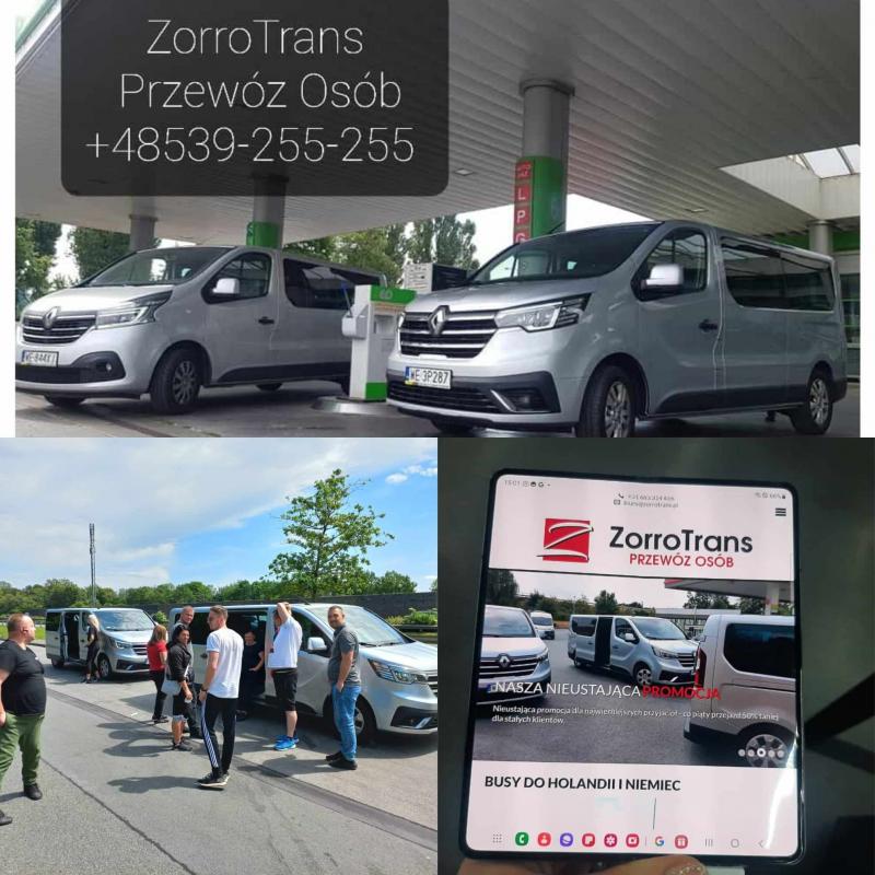Firma ZorroTrans wykonuje licencjonowany przewóz Osób i paczek między Polską Niemcami i Holandią, jak i odwrotnie,obsługiwane województwa na terenie kraju to LUBUSKIE - ZACHODNIOPOMORSKIE , WIELKOPOLSKIE - KUJAWSKO POMORSKIE ,dysponujemy nowymi wygodnymi busami marki Renault Trafic,które są wyposażone w zestawy DVD, jezdzimy z adresu pod adres szybko i bezpiecznie CO PIATY PRZEJAZD 50% TANIEJ, zapraszamy serdecznie.