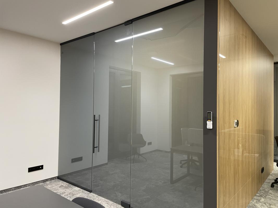 Ścianki szklane z folią inteligentną na pilota z aktywnym logo